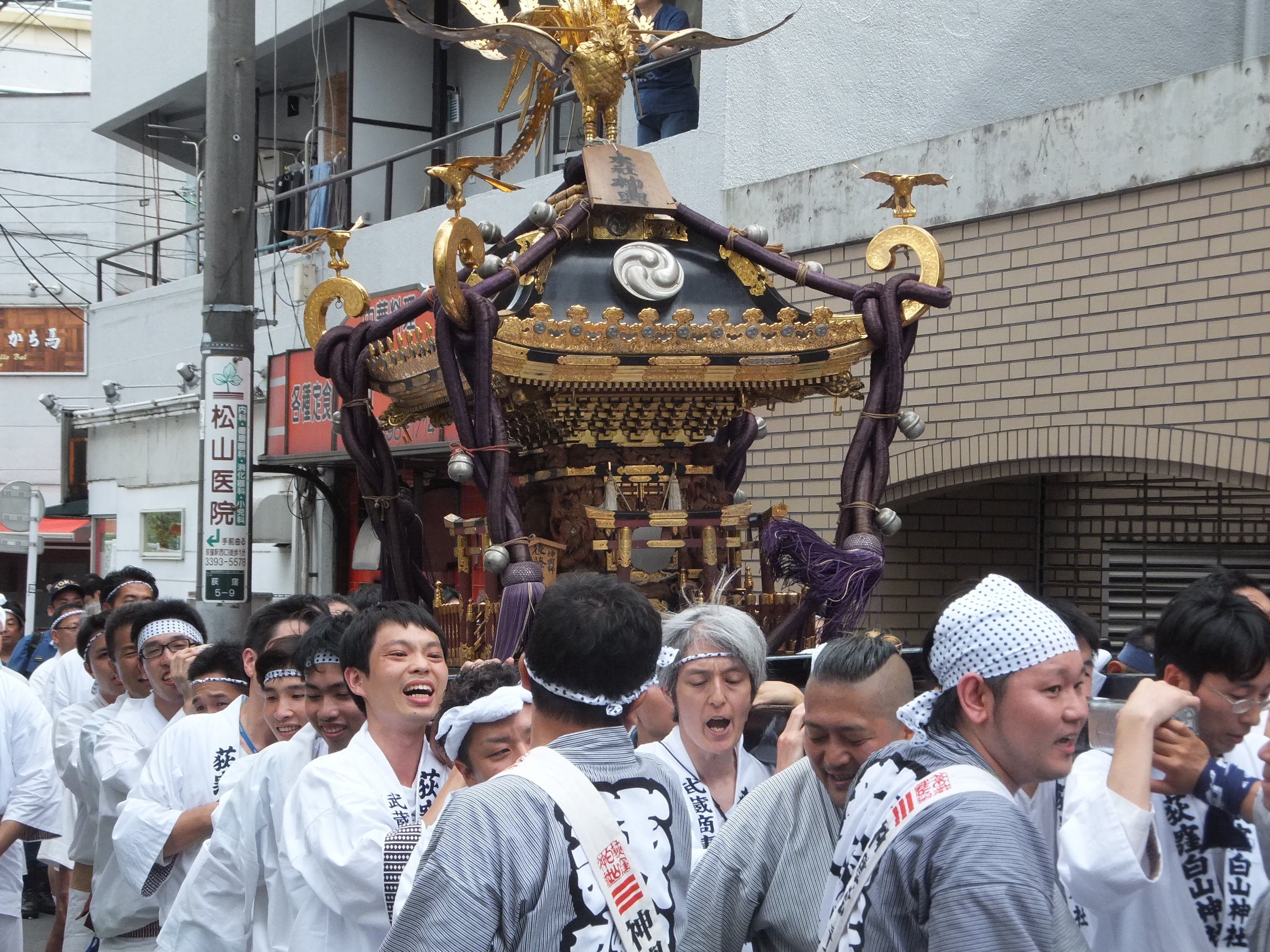地元白山神社のお祭り「荻窪白山神社秋季例大祭」に参加しています。当日はグループ総出で盛り上げ、特に若手社員は御神輿を担ぎお祭りを湧かせています!